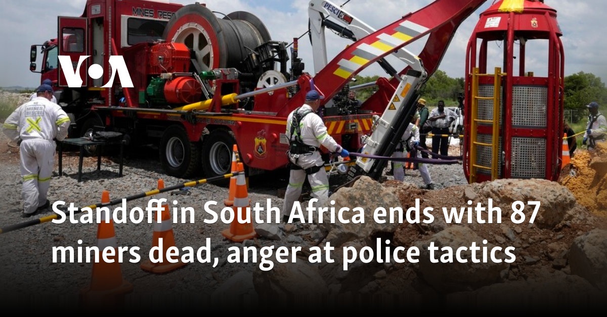 #voanews.com. Standoff in South Africa ends with 87 miners dead, anger at police tactics. Authorities face possible investigation into their initial refusal to help miners and instead 'smoke them out' by cutting off food supplies